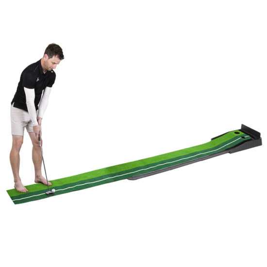 Patovací koberec tu není od toho aby green do detailu napodoboval, ale abyste si i na malém prostoru mohli zahrát svůj oblíbený sport! Navíc můžete zapojit také děti nebo přátele. V každém případě budete neustále pracovat na své technice a možná si i zlepšíte hendikep! Jakmile budete s tréninkem hotovi, stačí koberec zase srolovat a bezpečně uložit.Technický popis: