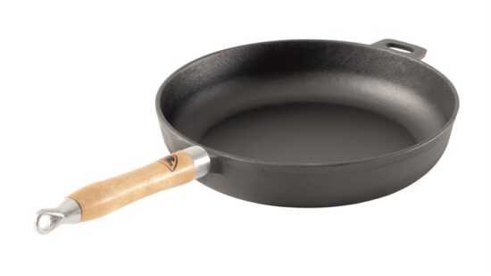 Vyrobeno z odolné lité oceli pro optimální přenos tepla a rovnoměrné vařeníDřevěné držadlo s místem na zavěšeníPřipravené k okamžitému použití